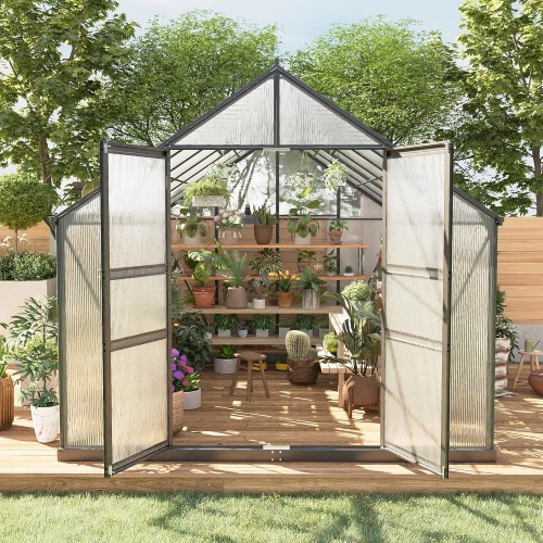 EAGLE PEAK 8×6 Portable Walk in Greenhouse with Polyester Reinforced Corners, Instant Pop Up Indoor Outdoor Gardening Green House, Roll Up Zipper Entry Doors and Mesh Windows, Gray/White
