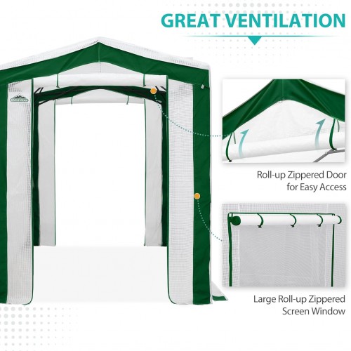 - PLANT PROTECTION: The clear, scrim reinforced, PE cover allows ample sunlight to pass through to your plants to keep them healthy. The doors and window flaps can be rolled up on warmer days to allow proper ventilation and air circulation and closed quickly to help retain heat