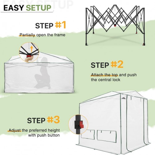 EAGLE PEAK Instant Pop-up Greenhouse, Indoor Outdoor Plant Gardening Green House, Roll-Up Zipper Doors and Side Windows, Heavy Duty Walk in 8×6 ft, Woven PE Top, White