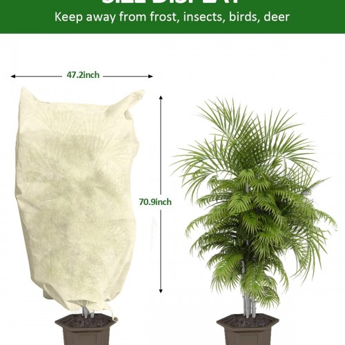 EAONE 4 Pack Plant Covers Freeze Protection, 47×71” Winter Frosts Cloth for Outdoor Plants, Reusable Frost Blankets Drawstring Bags for Cold Freeze Sun Protection Bird Insect Prevention, Beige