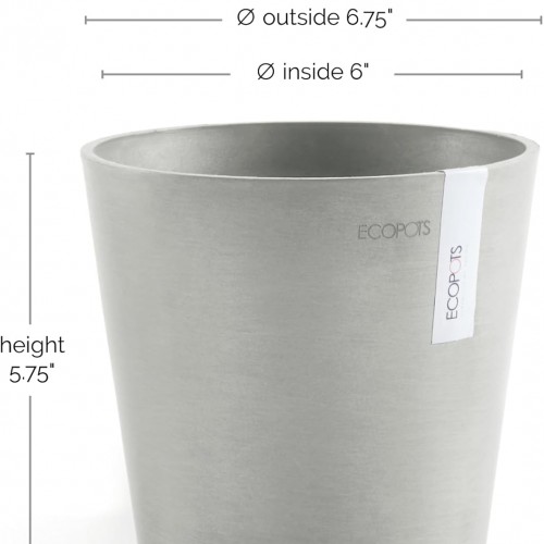 Ecopots Amsterdam Mini Durable Modern Round Recycled-Based Composite Flower Pot Planter, White Grey, 7″
