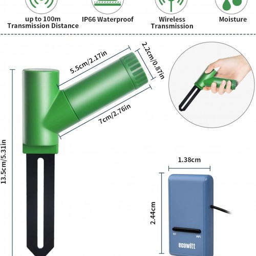Ecowitt GW1106 Soil Moisture Meter Kit, Includes GW1100 Wi-Fi Gateway and WH51 Soil Moisture Sensor, 915 MHz
