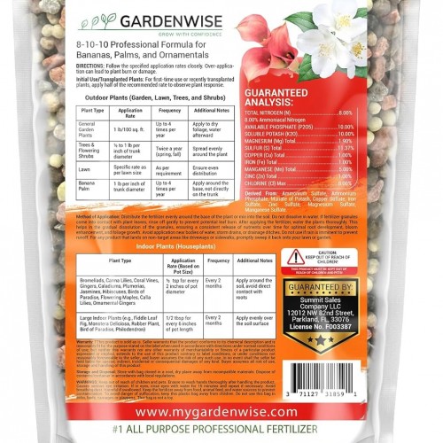 - 🍎 OPTIMAL FRUIT TREE NUTRITION: Gardenwise 8-10-10 Fertilizer is expertly tailored for a wide range of fruit trees like banana, apple, pear, peach, plum, apricot, and cherry. It supplies key nutrients to facilitate the crucial transition from growth phase to abundant flowering and fruitful harvests.