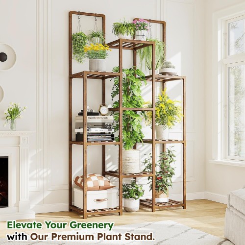 EnHomee Plant Stand Indoor Wood Plant Stand Outdoor Plant Shelves for Multiple Plants Stands with 11-16 Potted for Living Room Patio Balcony Yard Garden 34.2”W×11.8”D×47.4”H