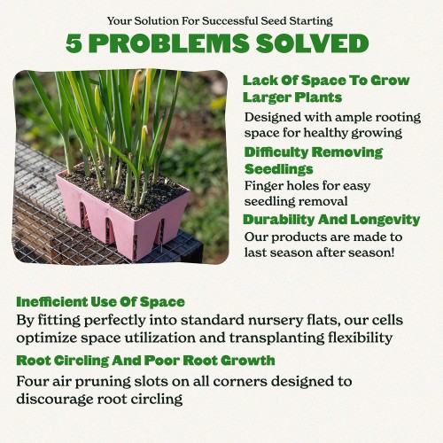 - Healthy Roots, Happy Plants: Forget root circling! Air pruning slots on all four corners of these plant germination trays and an open base encourage healthy root development. This translates to stronger, more vibrant seedlings ready to thrive in your garden.