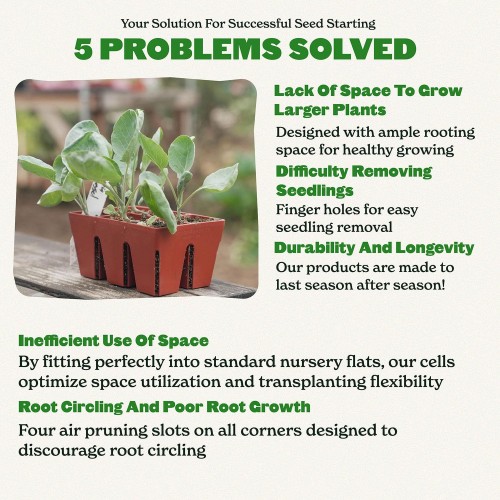 - Healthy Roots, Happy Plants: Forget root circling! Air pruning slots on all four corners of these plant germination trays and an open base encourage healthy root development. This translates to stronger, more vibrant seedlings ready to thrive in your garden.