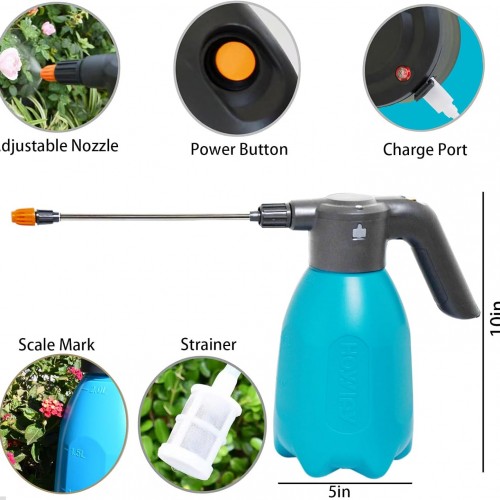 - 【Widely Use】Electric watering can as a plant watering device is perfect for garden plants watering, indoor plant mister, weeding, insecticide, disinfection, alcohol, sterilization, car washing,glass cleaning,kitchen cleaning, air humidifying,pet cooling and so on.Please note that when after use solution other than water, you must completely clean the bottle and let it spray water at least 20 seconds to remove residual solution from the nozzle