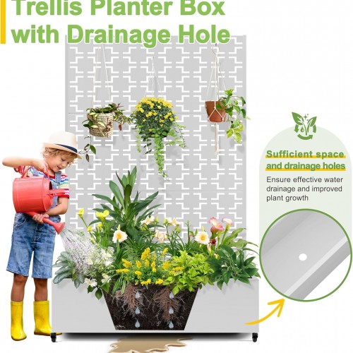 FENCY Metal Raised Garden Bed with Wheels and Trellis,73″x47″x16″ Planter Box for Climbing Plants, Vegetables & Vines, Features Privacy Screen and Drainage Holes (White-Square)