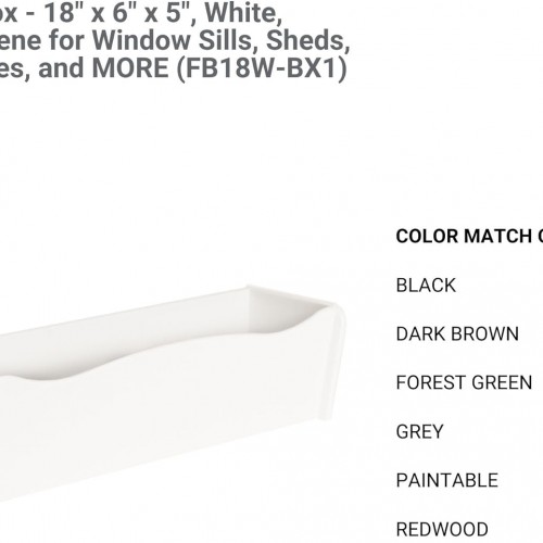 Flower Box 18″ x 6″ x 5″ White Polyethlene for Window Sills, Sheds, and Playhouses, 1 PK (FB18W-BX1)