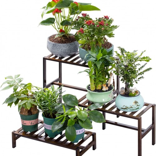 Flower Display Stand 3 Layers with 12 PCS Round Buckets, Plant Stand with Wheels, Movable Metal Plant Stand for Terrace Garden, Florist Shop (Gold Frame, White Buckets, 3-Tier, 12 Buckets)