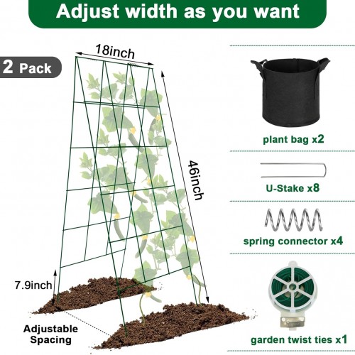- [Full Set]–The size of this trellis is 46″ L x 18″ W, you can get 2 pack–4 panels, also you can get full set of accessories. Including 8 U-Stake, 4 spring connector, 2 plant bags and garden twist ties.