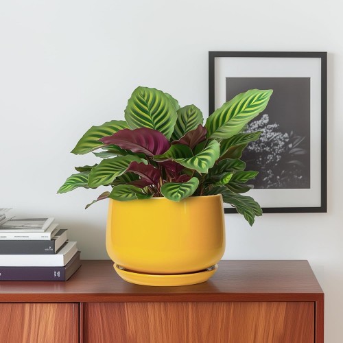 - Dimensions: This ceramic plant pot measures 5.91″ x 5.91″ x 4.41″. This yellow flower pot is an ideal choice for growing succulent plants, cacti, aloe vera, orchids, snake plant, african violet and other indoor & outdoor plants