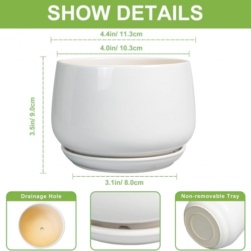 - Dimensions: The waist diameter of these ceramic plant pots is 4.4″/ 11.3cm, the external caliber is 4.0″/ 10.3cm, the height is 3.5″/ 9.0cm. This white plant pot is an ideal choice for growing succulent plants, cacti, aloe vera, orchids, snake plant, african violet, mint, rosemary, herbs, and other indoor & outdoor plants