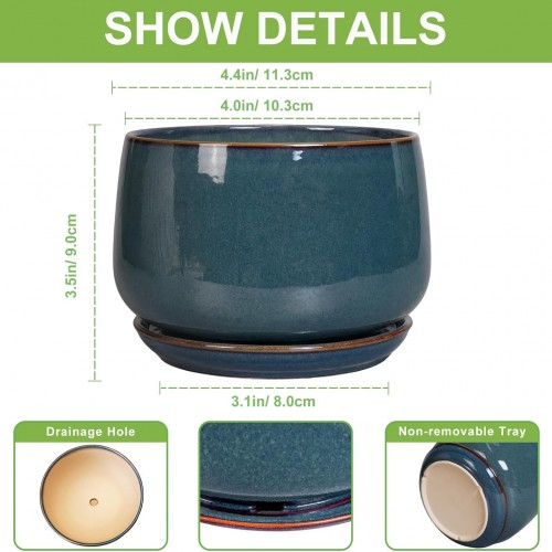 - Dimensions: The waist diameter of these ceramic plant pots is 4.4″/ 11.3cm, the external caliber is 4.0″/ 10.3cm, the height is 3.5″/ 9.0cm. This blue planter is an ideal choice for growing succulent plants, cacti, aloe vera, orchids, snake plant, african violet, mint, rosemary, herbs, and other indoor & outdoor plants