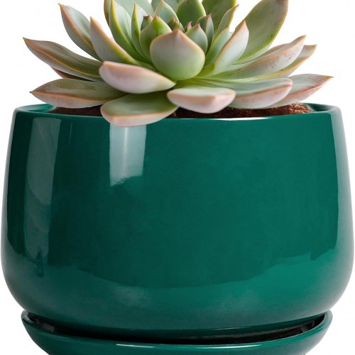 G EPGardening Ceramic Pots for Plants – 6 Inch Planter for Indoor Plants, Flower Pots with Drainage and Ceramic Tray, Modern Office Decor, Gifts for Plant Lovers, White