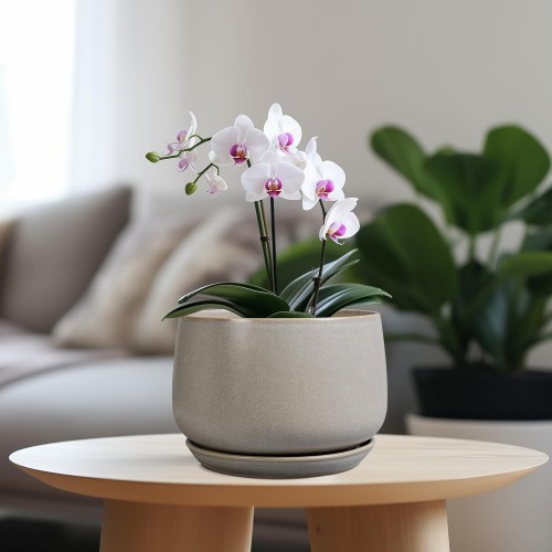 - Dimensions: These ceramic flower pot pit measures 7.28″ x 7.28″ x 5.39″. Modern flower pot is an ideal choice for growing snake plant, money tree, geranium plant, peace lily, monstera deliciosa, succulents, cacti, aloe vera, orchids, african violet, bonsai tree and other indoor & outdoor plants