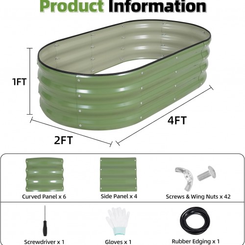 G GOOD GAIN Galvanized Metal Raised Garden Bed Kit – 4x2x1FT Outdoor Planter Box with Safety Edging and Gloves for Vegetables, Fruits, Flowers(Oliver Green, 2PC)