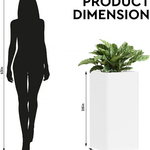 Galvanized Steel Metal Planter, 28 Inch White Square Outdoor Planters with Removable Insert Shelf and Drain Holes, Heavy Duty Flower Pot Modern Commercial Residential for Trees Patio Deck Yard Garden