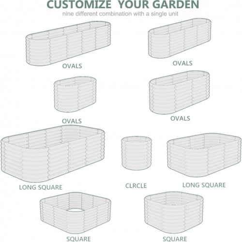 Galvanized Steel Raised Garden Bed 8x2ft Oval – 17″ Tall 9-in-1 Modular Planter Box for Vegetables/Flowers, Rust-Proof Metal Outdoor Planters Rubber Edging (Grey)