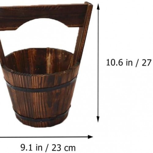 GANAZONO Wooden Bucket,Water Wishing Well Pail Vintage Style Primitive Planter Rustic Flower Planters Pots Container for Garden Home Plants