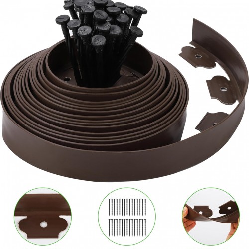 Garden Edging Kit Flexible Lawn Edging, Landscape Edging Border 33 FT with 30 Spikes, 4″ Tall No Dig Garden Edging Roll for Landscaping Flower Beds Yard Pathway (4IN x 33FT, Brown)