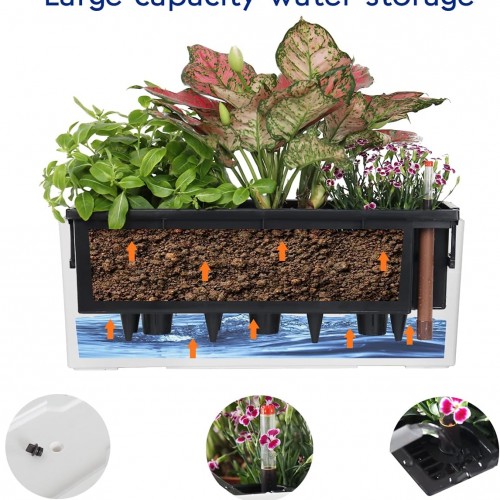GardenBasix 7.5”x20” White Self Watering Rectangle Planter Pots with 10 Quarts Coco Soil, Indoor Outdoor, Easy to Observe Water Level, Stylish and Simple