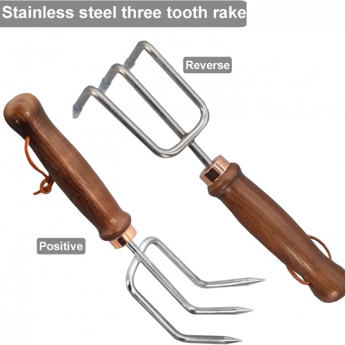 - Tools Overview: Two Shovels, transplanting shovel, designed for precise tasks like planting seedlings and transferring plants;digging shovel, slightly broader and perfect for breaking up soil or digging larger holes. Weed Extraction Tool,this tool is a game-changer for tackling stubborn weeds. The sharp, V-shaped tip easily gets under the roots, making weed removal effortless. Rake the soil,use the three-tooth rake to gently rake the soil surface to remove weeds and small stones.