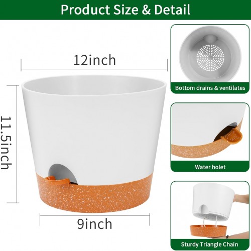 GARDIFE 12 inch Plant Pots, planters, Self Watering Pots, Large Plastic Flower pots with Deep Reservior and High Drainage Holes for Indoor Outdoor Plants and Flowers, White