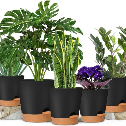 GARDIFE Plant Pots 7/6.5/6/5.5/5 Inch Self Watering Planters with Drainage Hole, Plastic Flower Pots, Nursery Planting Pot for All House Plants, African Violet, Flowers, and Cactus,Black