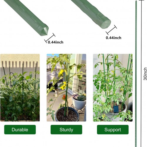 Garmeinea Garden Stakes 30 Inches Plastic Coated Steel Plant Stakes for Growing Climbing Plants, Pack of 25
