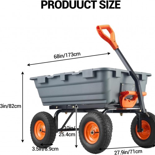 - EFFICIENT QUICK RELEASE MECHANISM: Designed with a front-handle dumping frame, this poly garden cart allows for quick and easy unloading. The 180° adjustable handle enhances maneuverability, making your tasks quicker and more efficient.