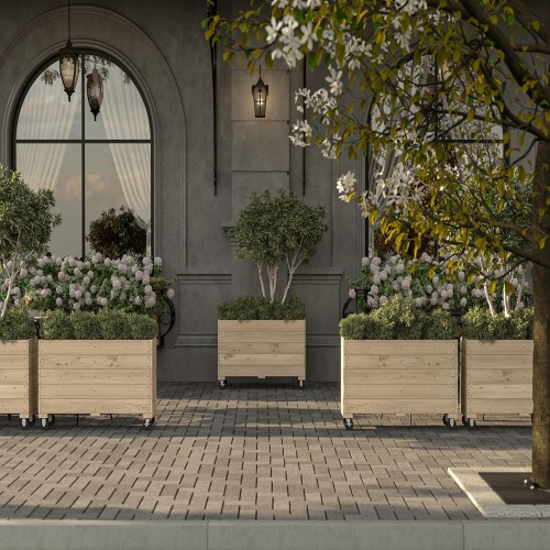 Generic 40x32x12in Indoor/Outdoor Mobile Wood Planter w/Lockable Wheels, Rolling Wood Planter Box Residential/Commercial