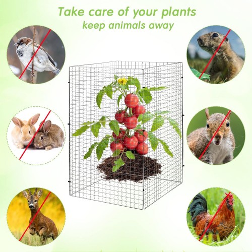 Geosar 60 Pcs/15 Packs Chicken Wire Plant Protectors 11.7 x 19.5 Inch Mesh Plant Protection Cage from Animals with U Shaped Garden Stakes and Nylon Tie for Outdoor Garden Flowers Vegetables