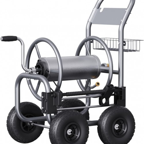 - 4 WHEEL HOSE REEL CART: Equipped with 4 wheels, which allows for easy mobility over any terrain. Especially user-friendly for elderly.Storage basket available to have gardeing tools in storage, which is designed for purpose of space saving and convenience.