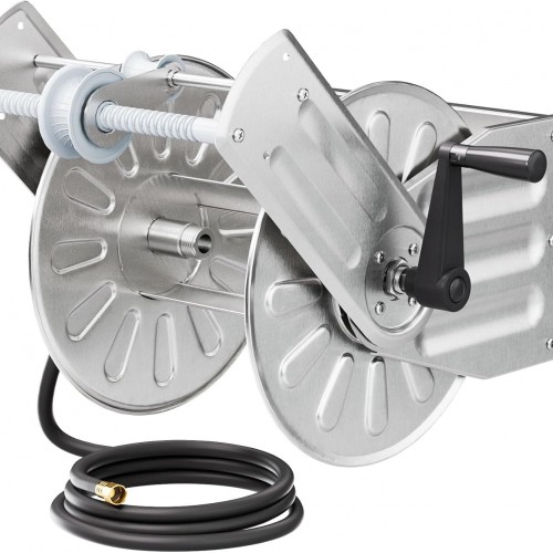 Giraffe Tools Retractable Hose Reel 5/8″ x 90 ft Wall Mounted Garden Hose Reel Heavy Duty, Automatic Rewind, 180 Deg Swivel, Any Length Lock, 9 Pattern Nozzle, 90 ft, Dark Grey