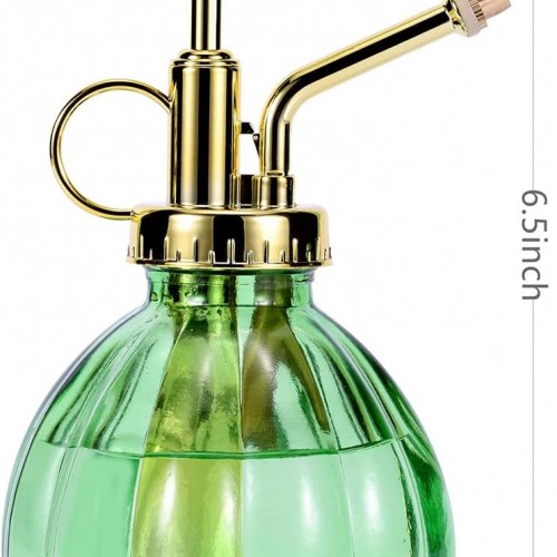 Glass Plant Mister Spray Bottle, 6.5″ Green Glass Water Spray Bottle with Gold Top Pump Small Watering Can, Small Plant Sprayer Mister for Indoor Outdoor House, Green+Gold (Green+Gold C)