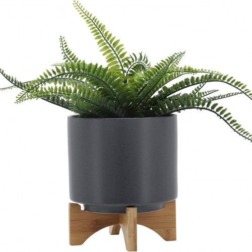 - Elegant Decorative Planter: Featuring a sleek black glaze with a cracked beige texture, these ceramic planter pots with stands measures 8x8x9 inches. Each stoneware indoor planter with stand adds a modern yet timeless accent to any room or garden.