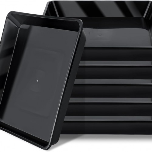GREANER 14 Inch of Plastic Plant Saucer, 6 PCS Durable Plant Trays for Indoors, Square Plant Water Dray Tray, Plant Water Catcher Drip Dishes, Clear Drip Trays for Indoors & Outdoor Plants