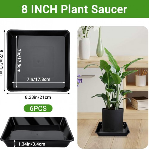 GREANER 8 Inch Humidity Tray, Black 6 PCS Plant Pot Drainage Tray, Indoor Plant Trays for Pots, Drip Trays for Potted Plants, Plastic Plant Trays for Pots, Seed Starter Growing Tray