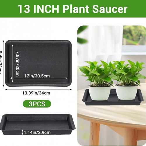 GREANER Plant Saucer Tray Rectangular, Heavy Sturdy Plastic Plant Drainage Trays, Plant Pot Drainage Tray for Indoor Outdoor, Plant Drip Trays for Pots, Seed Starter Growing Tray(13 x 9 inch, Black)