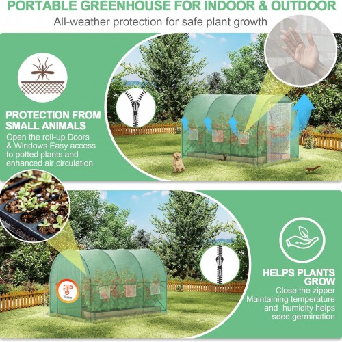 - Ventilated Screen Doors & Windows: This green house for winter has 6 screen windows & 2 roller shutter doors, making it easy to get in and out of the tunnel green house while keeping the air circulating inside the greenhouse & keeping out unwanted visitors. Double stitched and reinforced window seams prevent tearing and provide a stable growing environment for your plants