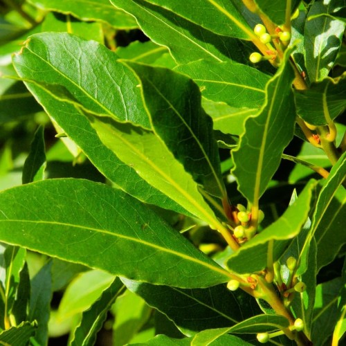 - [INFO1] – Laurus nobilis. Bay Laurel shrub/tree is most known for its dark green, glossy leaves with a spicy, pungent flavor. Plant your Bay Laurel, Laurus nobilis, in an attractive tub or container plant for the patio. This herb performs best in fertile soil kept moderately moist. Use Bay Laurel for seasoning, garnish and for pickling mixtures. Its leaves have the strongest flavor when dried.