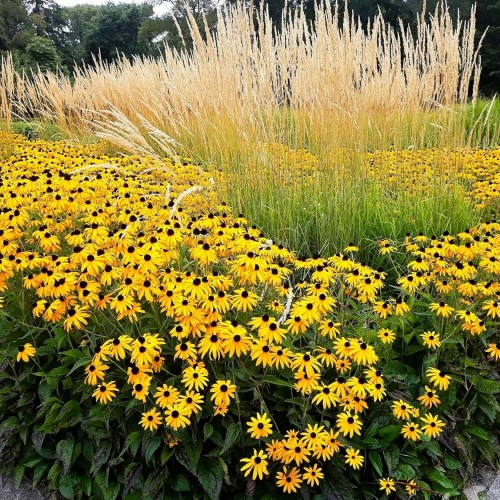 - [INFO1] – A yellow flowering perennials that are true perennials, returning larger each year. Great for mass plantings & provides wonderful contrasting colors when paired with ornamental grasses, Shasta Daisies, Russian Sage & Dianthus. Deadhead regularly for continued blooms. A North American native wildflower plant as well as being deer proof & rabbit proof, yet attracts butterflies.