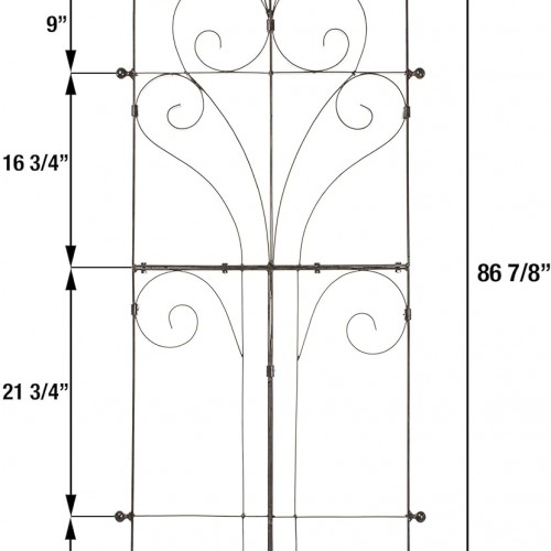 - Powder coated finish – Weather resistant, the trellis stands strong on its own or secured to a wall, adding grace to your garden even without a plant on it. With its charcoal brown powder-coating, a faux hand-rubbed finish has been applied for aesthetic, rustic appeal. Ideal for summer to support flowering vines, and in fall or winter, to add architectural interest to your lawn decor.