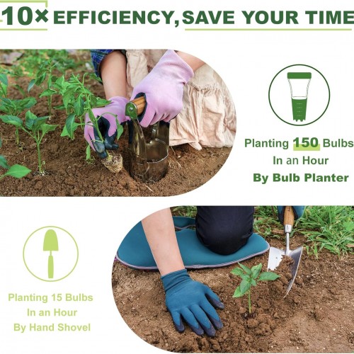 Haliaeetus Bulb Planter Tool, 4 inches Depth Mark Hand Bulb Planter, Non-Bending Stainless Steel Bulb Planter Digger, Garden Bulb Transplanter with Comfortable Wood Handle for Planting Tulip, Daffodil