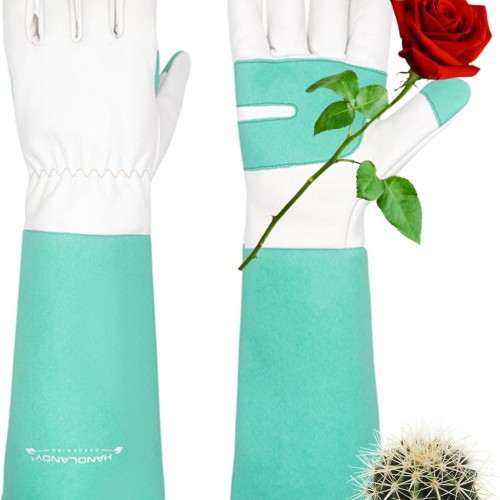HANDLANDY Ladies Leather Gardening Gloves, Thorn Proof Women Rose Pruning Garden Yard Glove, Heavy Duty Long Sleeve Gloves (Small, Rosy)