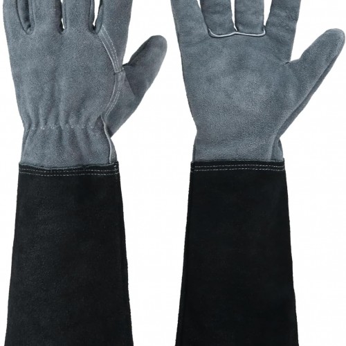 HANDLANDY Leather Gardening Gloves, Thorn Proof Long Gauntlet Heavy Duty Garden Gloves, Elbow Length Rose Pruning Weeding Yard Glove (Large, Green)