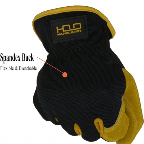 HANDLANDY Leather Work Gloves for Men & Women, Reinforced Durable Garden Gloves, Cowhide Working Glove for Gardening