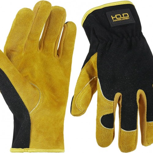 HANDLANDY Leather Work Gloves for Men & Women, Reinforced Durable Garden Gloves, Cowhide Working Glove for Gardening