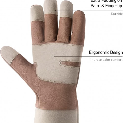 HANDLANDY Long Gardening Gloves for Men & Women, Thorn Proof Rose Pruning Gloves Leather Gauntlets Garden Glove Yard Work Glove (Medium, Brown)